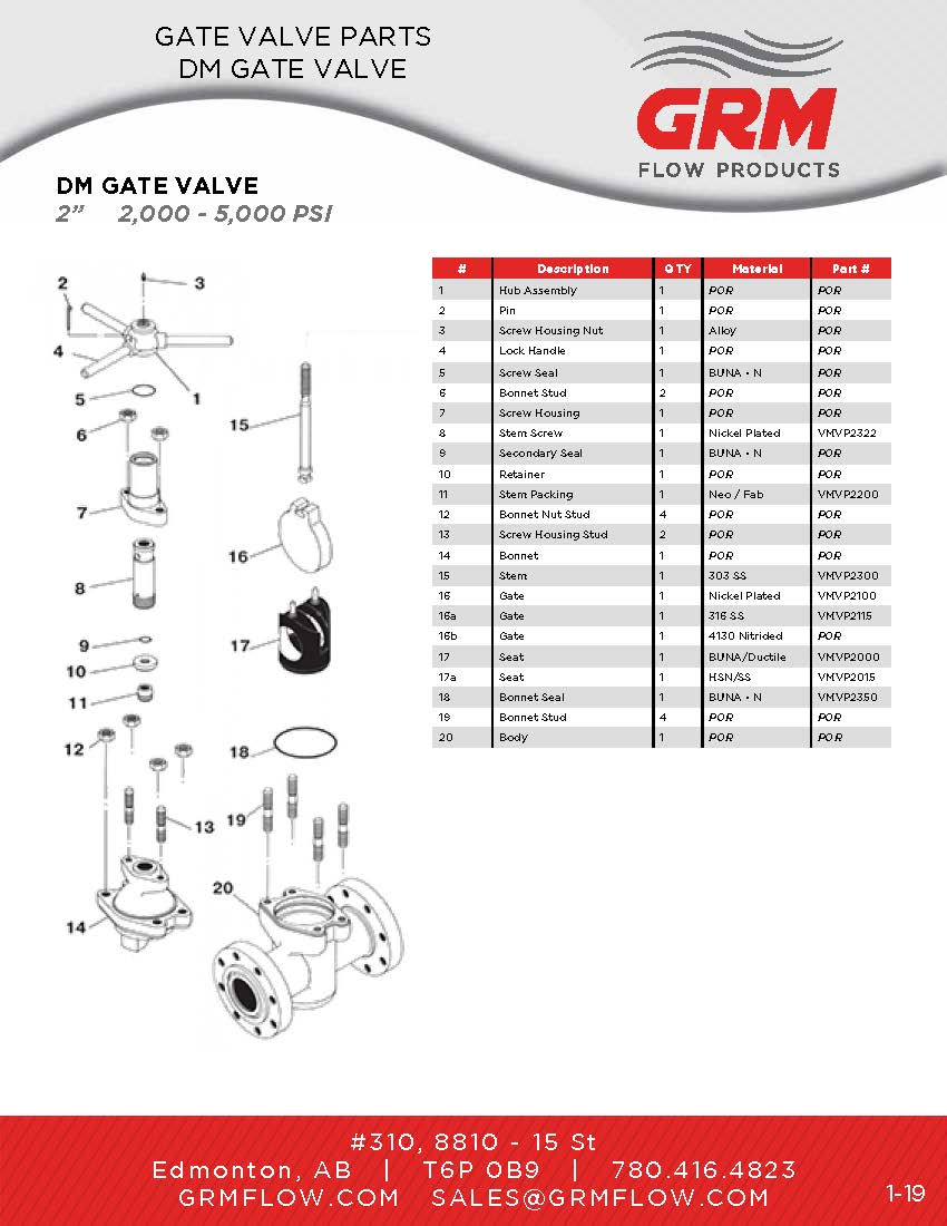 Demco© Model DM API Gate Valve Parts GRM Flow Products
